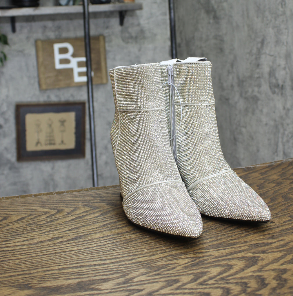 Give your fall look the perfect finishing touch with these Cailin Ankle Boots from A New Day. These ankle boots boast a cushioned insole construction and breathable faux-leather upper to add that extra layer of comfort to your step, and the 3.25-inch block heel adds a smart lift to your height. Plus, a side zipper closure makes for easy on and off. Showcasing allover sparkly detailing for an on-trend look, simply pair with a variety of dresses, skirts and denim for effortless style on any casual outings.A New Day: Style that goes wherever you do. Ankle winter boots 3.25in block heel Features sparkle detailing Cushioned insole Pointed toe Side zipper closure Sizing: Womens Construction: Cushioned Insole Footwear Insole Material: 100% Polyurethane Features: Zipper Care and Cleaning: Clean With Mild Detergent Footwear Lining Material: 100% Polyester Toe Style: Pointed Toe Height Type: Ankle Footwear Upper Material: 8% Polyester and 92% Glass Beads Heel: Approximately 3.25 Inches Block Heel Footwear Outsole Material: 100% TPR (Thermoplastic Rubber) Boot Shaft Circumference: Approximately 10.5 Inches Boot Shaft Height: Approximately 4.5 Inches Shoe Width: Medium Footwear toe openness: Closed Toe Footwear outsole details: Textured Outsole