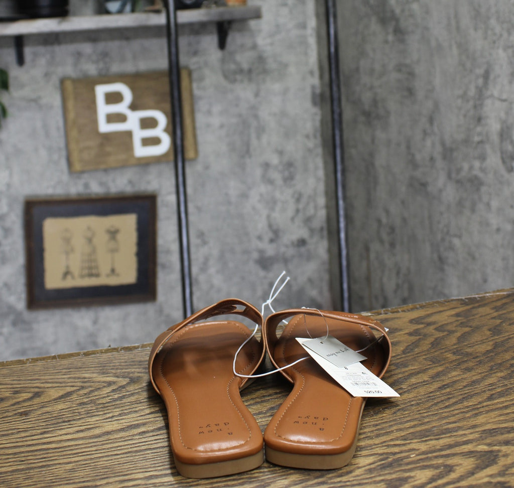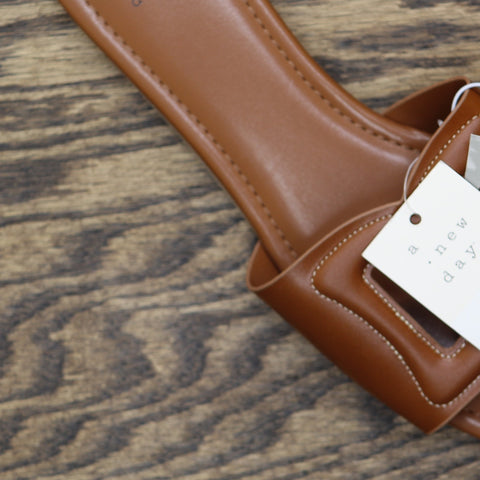 Give summer looks a chic finishing touch with these Deidra Slide Sandals from A New Day. These faux-leather sandals have an open square toe and a backless design with a memory foam insole to keep your feet comfortable. An interlocking D-design cutout on the upper band takes the look up a notch, and the slip-on style provides ease of wear.A New Day: Style that goes wherever you do. Faux-leather slide sandals Memory foam insole Single upper band with cutout design Open square toe Slip-on style Sizing: Womens Care and Cleaning: Clean With Mild Detergent Footwear Lining Material: 100% Polyurethane Construction: Memory Foam Insole Footwear Insole Material: 100% Polyurethane Features: Slip On Toe Style: Round Toe Footwear Upper Material: 100% Polyurethane Footwear Outsole Material: 100% TPR (Thermoplastic Rubber) Heel: Approximately 0.25 Inches Block Heel Shoe Width: Medium Footwear toe openness: Open Toe Footwear outsole details: Textured Outsole