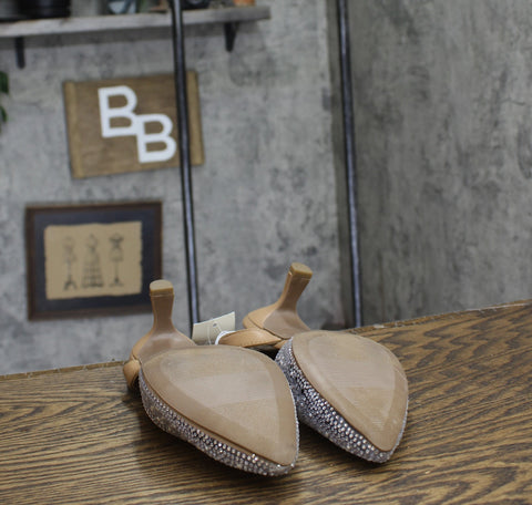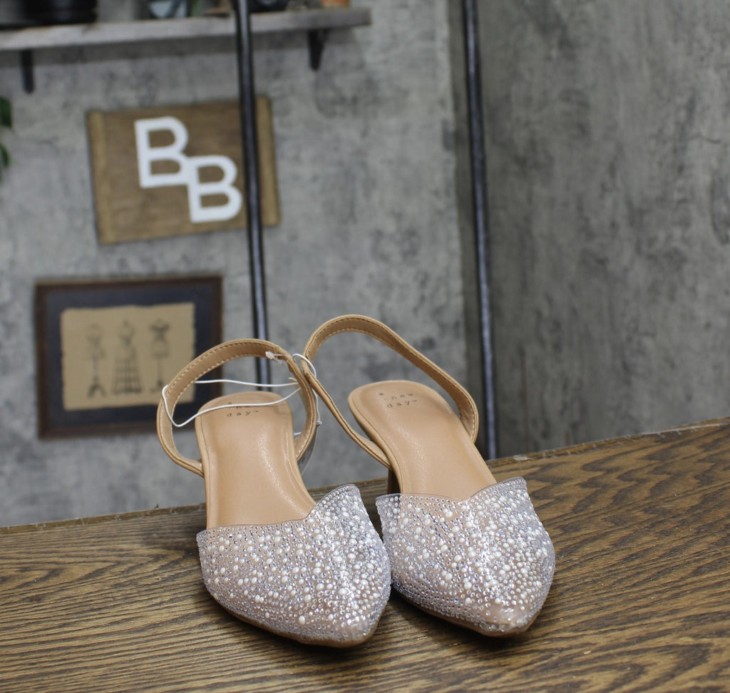 Let every step sparkle in these Isabel Embellished Slingback Kitten Pumps from A New Day. These pull-on pumps feature a closed, pointed-toe vamp adorned with rhinestones and stones for a standout look. Set on a 2.5-inch kitten heel, these stylish pumps have an airy slingback silhouette featuring a sleek ankle strap with elastic gore, adding height while providing ease of wear.A New Day: Style that goes wherever you do. Embellished slingback pumps 2.5in kitten heel Closed pointed toe Stone-and rhinestone-studded vamp Pull-on style Sizing: Adult General Sizing Care and Cleaning: Brush Away Surface Dirt Footwear Lining Material: 100% Polyurethane Construction: Ankle Strap Footwear Insole Material: 100% Polyurethane Features: Pull-On Toe Style: Pointed Toe Footwear Upper Material: 100% Polyurethane Footwear Outsole Material: 55% Polyester and 45% TPR (Thermoplastic Rubber) Heel: Approximately 2.5 Inches Kitten Heel Shoe Width: Wide Footwear toe openness: Closed Toe Footwear outsole details: Flocked Outsole