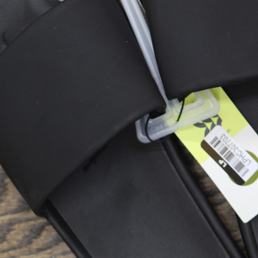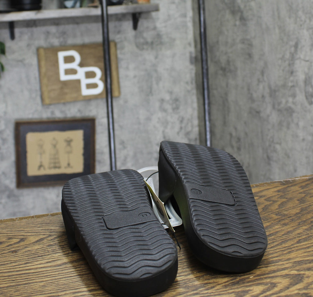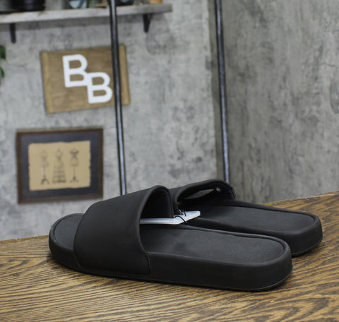 Why we're ALL IN:Medium-width sport slides with an open toe and back helps keep your feet in breezy comfort during sunny outings. The slip-on style of the sandals allows for easy on and off, while the almond toe and solid color complete your casual look with easy style.All in Motion: Inspiring the potential in every body. Sizing: Mens Care and Cleaning: Brush Away Surface Dirt Footwear Lining Material: 100% Recycled Polyester Construction: Non Marking Sole Footwear Insole Material: 100% EVA (Ethylene Vinyl Acetate) Features: Slip On Toe Style: Almond Toe Footwear Upper Material: 100% Polyurethane Footwear Outsole Material: 100% EVA (Ethylene Vinyl Acetate) Heel: No Heel Shoe Width: Medium Footwear toe openness: Open Toe Footwear outsole details: Treaded Outsole