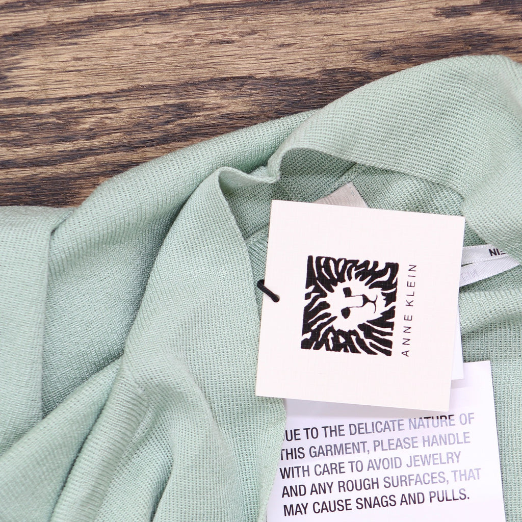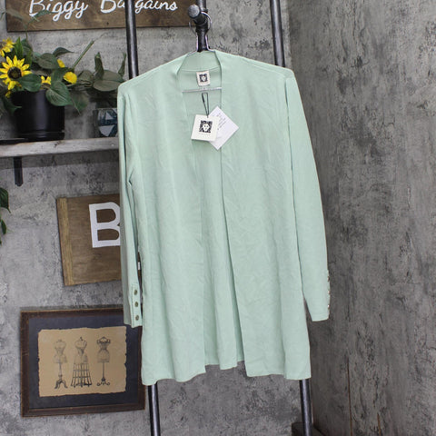 Anne Klein Carmel Open-Front Button Cuff Cardigan Juniper Crocodile Green M