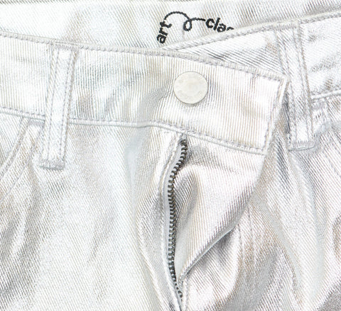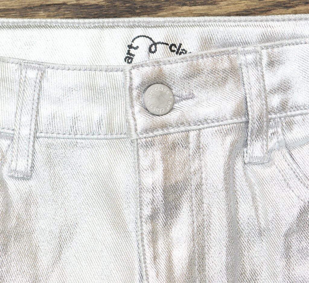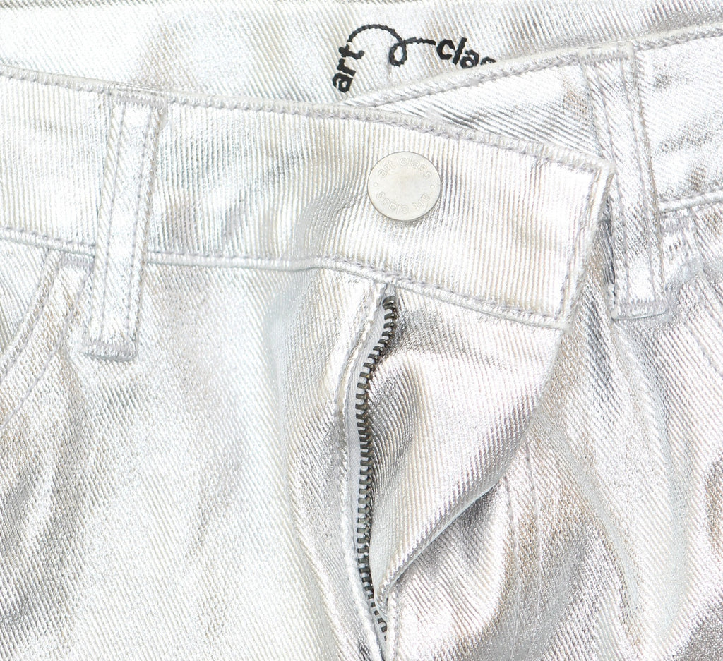Add some shimmer to your kid's wardrobe with these High-Rise Baggy Metallic Denim Pants from art class. Made of cotton and spandex, these high-rise pants feature a fly button and zipper closure. Tailored in a regular fit, these wide-leg denim pants also have an adjustable waistband for a stay-put fit. Plus, they have two front and back pockets to keep small items handy.art class: One-of-a-kind looks for the one and only you. Stretchable baggy metallic pants Midweight denim fabric Cotton-spandex blend Fly button and zipper closure Adjustable waistband High-rise, wide leg with regular fit Full length Features 4 pockets Sizing: Kids Material: 98% Cotton, 2% Spandex Garment Length: Full Closure Style: Fly Button and Zipper Inseam Length: 27 Inches Rise: High Rise Fit: Wide Leg with a Regular Fit Fabric Name: Denim Garment Details: Adjustable Waistband, Washed Fabric Weight Type: Midweight Fabric Stretch: Stretch Care and Cleaning: Machine Wash, Tumble Dry