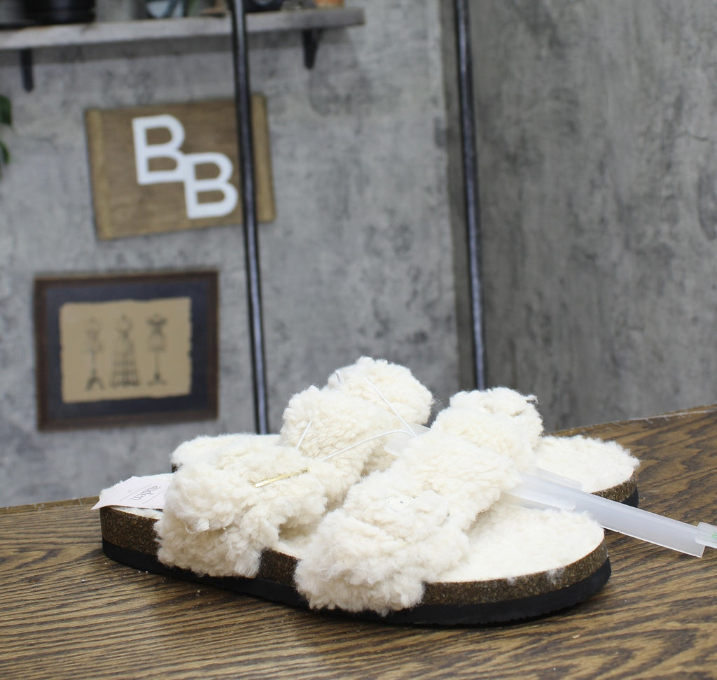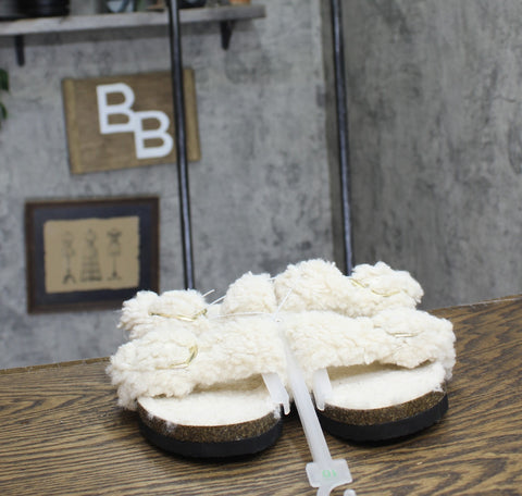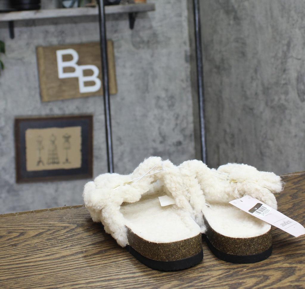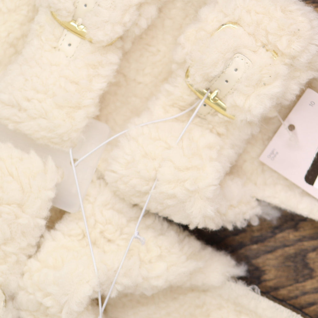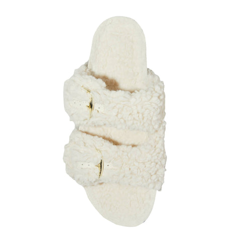 Keep your feet feeling pampered and cozy at all times with these Jane Two Band Buckle Slide Slippers from Auden. Featuring a round-toe front with adjustable buckle closure top band, they bring on-trend flair to your look. The faux fur upper and contoured footbed keep your feet comfy wherever the day takes you, and the slip-on style makes for easy wear. Pair with anything from a casual dress to a blouse and skirt to complete the look.Auden: Comfort true to every shape & hue. Two band buckle slide slippers Contoured footbed Faux fur upper Adjustable buckle closure Open round-toe Slip-on design Sizing: Womens Fabric Name: Faux Fur Care and Cleaning: Air Dry Footwear Lining Material: 100% Polyester Construction: Contoured Footbed Footwear Insole Material: 100% Polyester Features: Slip On Toe Style: Round Toe Footwear Upper Material: 96% Polyester and 4% Polyurethane Footwear Outsole Material: 55% Polyester and 45% EVA (Ethylene Vinyl Acetate) Heel: No Heel Shoe Width: Medium Footwear toe openness: Open Toe Footwear outsole details: Flocked Outsole
