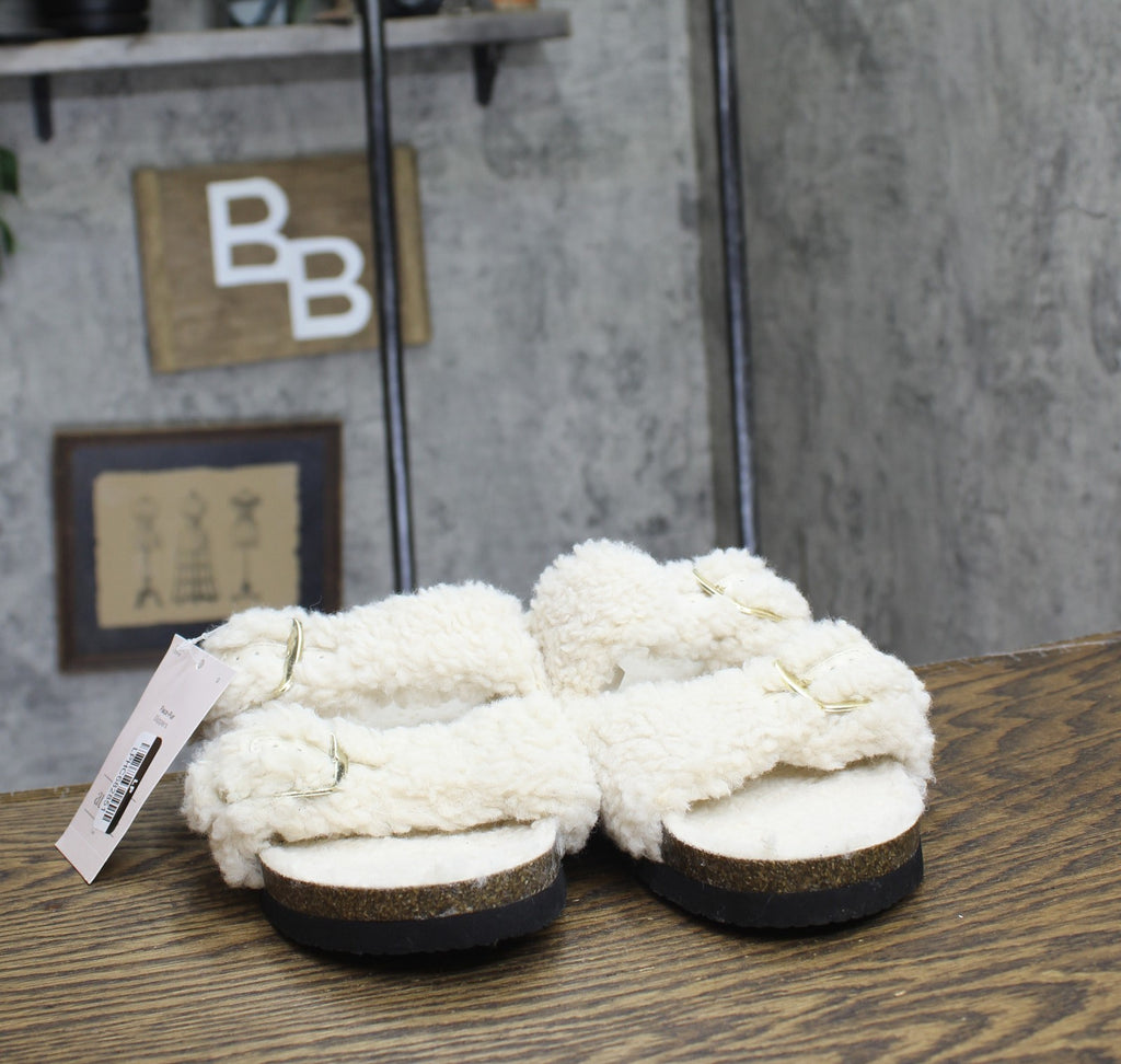Auden Womens Jane Two Band Buckle Slide Slippers 91308535 Cream Off White 9M