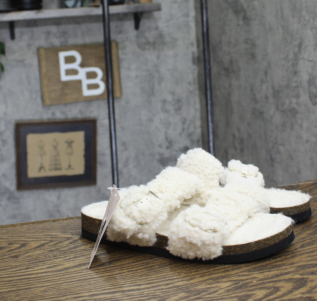 Keep your feet feeling pampered and cozy at all times with these Jane Two Band Buckle Slide Slippers from Auden. Featuring a round-toe front with adjustable buckle closure top band, they bring on-trend flair to your look. The faux fur upper and contoured footbed keep your feet comfy wherever the day takes you, and the slip-on style makes for easy wear. Pair with anything from a casual dress to a blouse and skirt to complete the look.Auden: Comfort true to every shape & hue. Two band buckle slide slippers Contoured footbed Faux fur upper Adjustable buckle closure Open round-toe Slip-on design Sizing: Womens Fabric Name: Faux Fur Care and Cleaning: Air Dry Footwear Lining Material: 100% Polyester Construction: Contoured Footbed Footwear Insole Material: 100% Polyester Features: Slip On Toe Style: Round Toe Footwear Upper Material: 96% Polyester and 4% Polyurethane Footwear Outsole Material: 55% Polyester and 45% EVA (Ethylene Vinyl Acetate) Heel: No Heel Shoe Width: Medium Footwear toe openness: Open Toe Footwear outsole details: Flocked Outsole