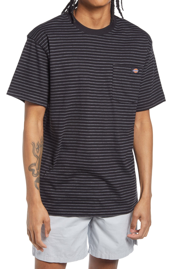 Inspired by factory and garage workwear of the '40s and '50s, this cotton-blend T-shirt sports rings of yarn-dyed stripes and a perfectly placed chest pocket. 30" length (size Medium) Crewneck Short sleeves Chest patch pocket 83% cotton, 17% polyester Machine wash, tumble dry Imported Men's Clothing
