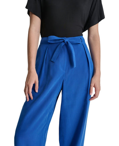 DKNY Womens Twill Tie-Front Pleated Pants P4GKTX72 Lapis Blue 2