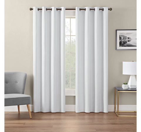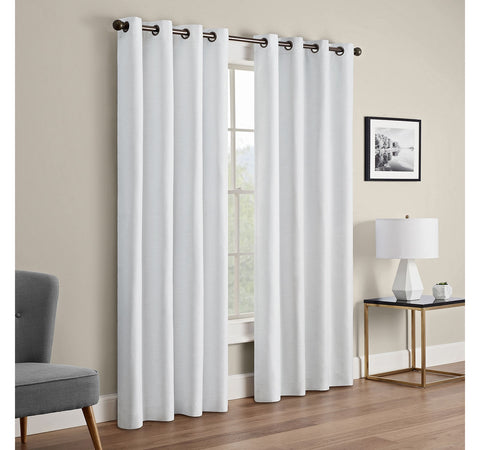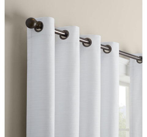 Bring a stylish solution to your windows with the eclipse absolute zero Andes grommeted window curtain panel. Absolute zero opacity means 100% of incoming visible light is blocked. Provides insulating benefits, keeping your rooms cooler in the summer and warmer in the winter, saving you money on energy costs. Each panel measures 50 inches wide. Fits a curtain rod up to 1.25" diameter. Curtain rod sold separately. Exclusively at JC Penney's. Number of Panels: 1 Included: 1 Panel(s) Features: Energy Saving, Noise Reduction, Insulated, Room Darkening Top Construction: Grommet Top Opening: 1 1/2 In Grommet Open Use: Indoor Fiber Content: 100% Polyester Fabric Description: Yarn Dyed Woven Lining: Unlined Light Filtration: 100% Blackout Care: Machine Wash Curtain Length: 84 Inch Curtain Width: 50 Inch Grommet