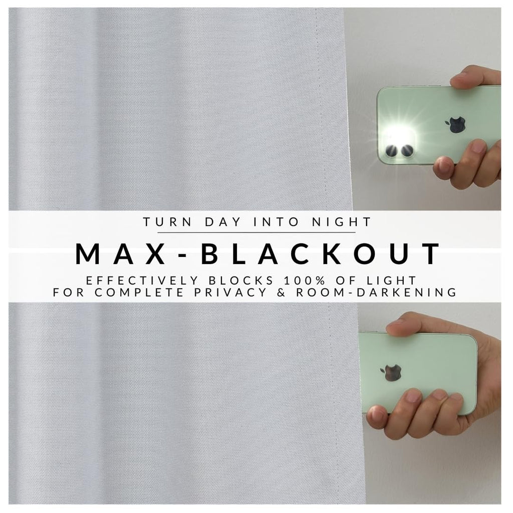 PRODUCT SPECIFICATIONS: Sold as individual panels. Each window panel measures 52 inches in width and comes in two different length options: 84 inches and 95 inches long. CASUAL, CLASSIC DESIGN: Designed with a soft, luxurious drape and offered in 5 gorgeous neutral shades, this curtain collection is perfect for every décor style. Ideal for bedrooms, living rooms, nurseries, home theatres and home offices. BLACKOUT BENEFITS: Designed using maximum blackout technology, the Solace curtain panels feature an off-white three-pass blackout lining applied to the back of the curtain fabric that is able to effectively block out 99% of sunlight and harmful UV rays, and also provides sound dampening and thermal insulation. DUAL TOP TREATMENT: Offers a 2-in-1 construction with dual hanging options: Back tabs for an elegant pleated style or rod pocket to create a more casual gathered look. The four inch rod pocket/back tabs are recommended with up to a 2 inch rod for maximum movement. EASY CARE: 100% Polyester. For quick and easy upkeep, we recommend to machine wash in cold water on a delicate cycle. Tumble dry low. Cool iron as needed.