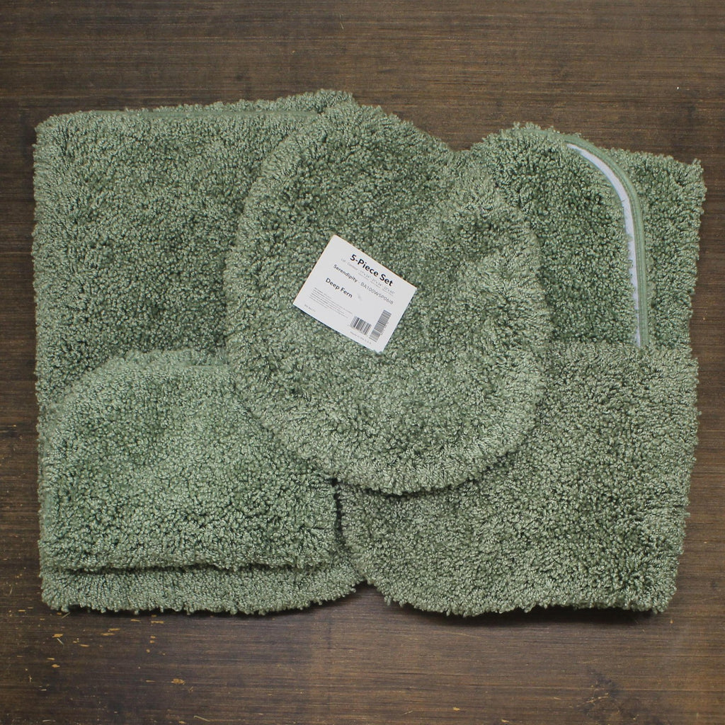 5 Piece Set Includes: Lid (17"x14"), Contour (21"x24"),Bath Rug ( 17"x24"), Bath Rug ( 21"x34"), Bath Rug ( 22"x60") Easy Care: Machine wash separately with mild detergent, and avoid using bleach or chorine. To maintain their color and softness either tumble dry on a low heat or lay flat to air dry. Latex Backing: Ensures the rug stays securely in place by providing superior grip and preventing slipping. Durability: Polypropylene is highly durable and resistant to wear and tear, making it ideal for applications that require long-lasting performance. Made in the USA: Proudly crafted in the USA by Garland Rug, ensuring quality and craftsmanship.