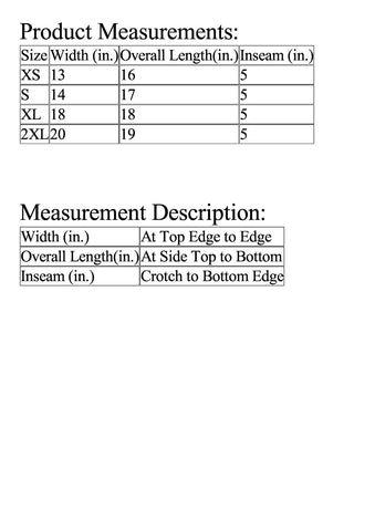 Size Width (in.) Overall Length(in.) Inseam (in.)