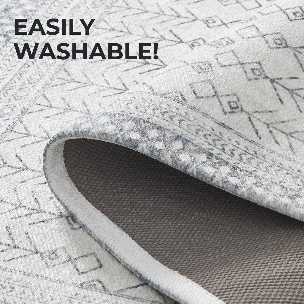 Vintage Design & Cotton Blend: These washable rugs feature a distressed tribal design in a tonal blue or grey color that will easily complement your aesthetic room décor. These rugs are made from a quality polyester and cotton blend – durable, stylish, and easy to care for. Machine Washable: This throw rug is machine washable and can easily be vacuumed or quickly cleaned with a broom or spot cleaned when needed. Ideal for high-traffic areas in your home. Safe for Pets: This washable rug features a low-pile 7mm thickness. The flatwoven design won't trap pet hair, dander, food, and other messes. Easily vacuum and spot clean when needed. Prevent pet scratches on your floor with a stylish washable rug. Non-Slip Reverse: Featuring a slip-resistant rubber backing, we designed this rug for high-traffic areas in your home. Thin enough to fit under a doorway and durable enough to withstand daily use in an entryway, hallway, living room, kitchen, and more! Customer Focused: Customer satisfaction is of utmost importance to us. We are confident that you'll love our home products, but if you're not satisfied, our customer service team will work with you to make it right!