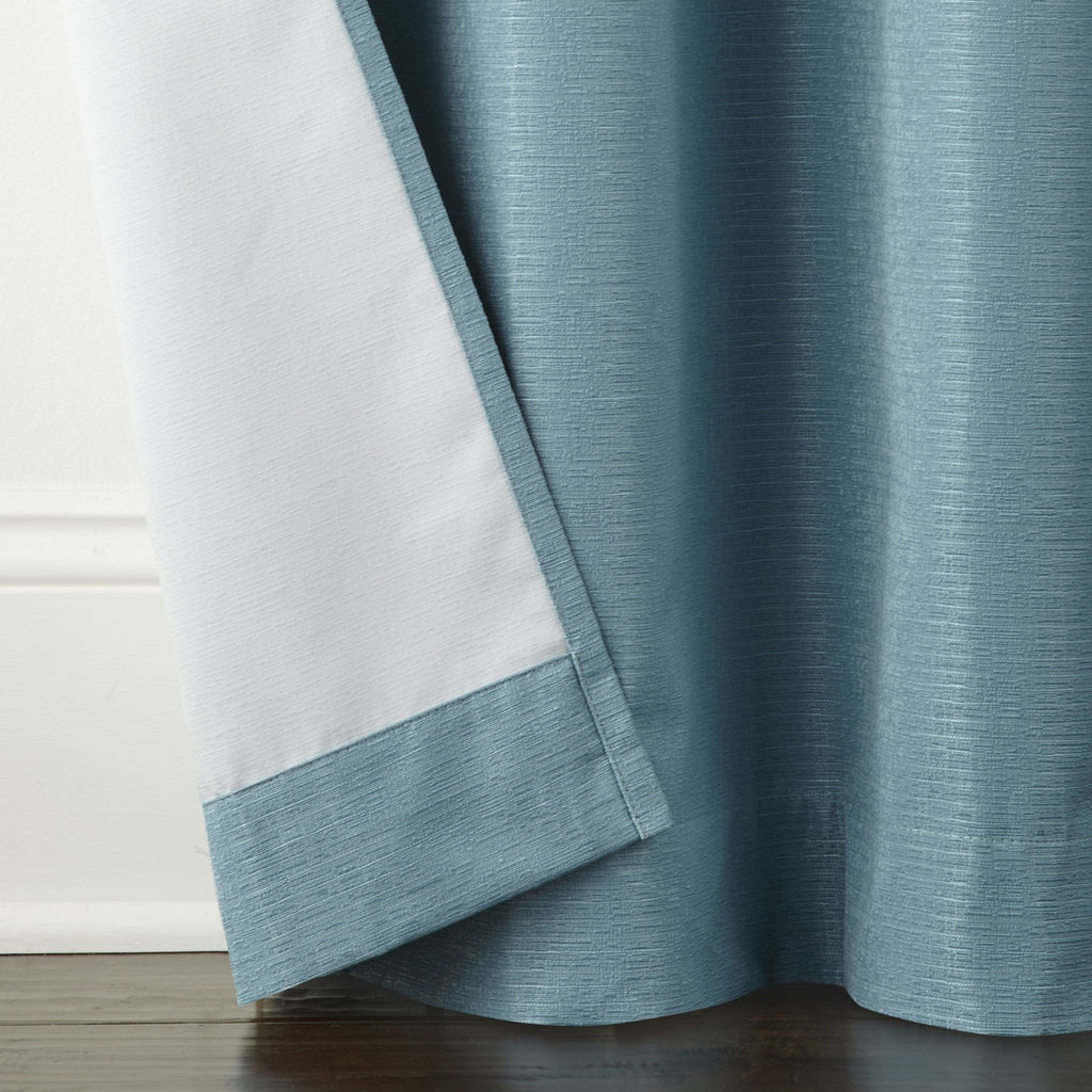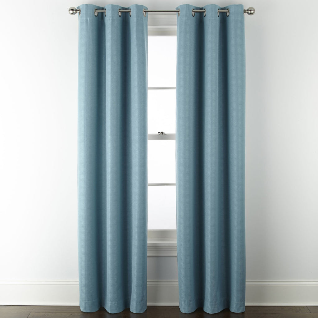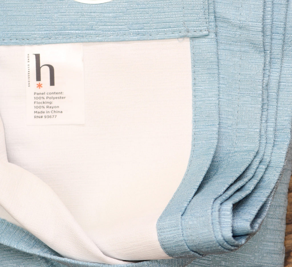 This Home Expressions Allister single top curtain panel has a blackout design to block light, provide privacy, save energy, and feature brushed silver-tone grommets. The Allister is unlined, the thermal foam on the back helps achieves energy saving and 100% blackout effect. It's made from durable woven fabric, and STANDARD 100 by OEKO-TEX certifies this product has been tested and verified free from over 300 harmful substances. Number of Panels: 1 Included: 1 Panel(s) Features: Room Darkening, Energy Saving Top Construction: Grommet Top Opening: 1 1/2 In Grommet Open Use: Indoor Fiber Content: 100% Polyester Fabric Description: Woven Lining: Unlined Light Filtration: 100% Blackout Care: Hand Wash Curtain Length: 84 Inch Curtain Width: 40 Inch Grommet