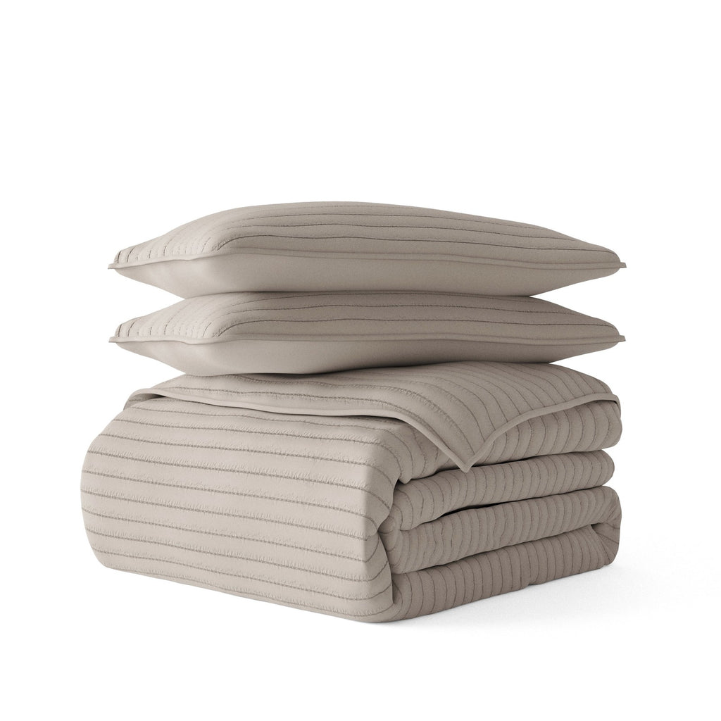 Give your room a comfy new addition with Noble Linens Solid 3 Piece Stripe Stitch quilt set with shams! Spun from our premium microfiber yarns this set is twice as strong as cotton wrinkle resistant and double brushed for a super soft cozy feel. Available in 3 elegant stiched designs of striped floral and diamond elevating the look and feel of any bedroom. The sets are available in 6 gorgeous colors: Dusk Blue Light Gray Eucalyptus Latte Natural and White; it ll be hard to pick only one for your bed refresh!