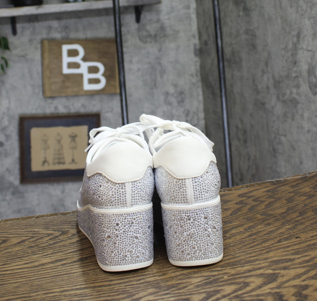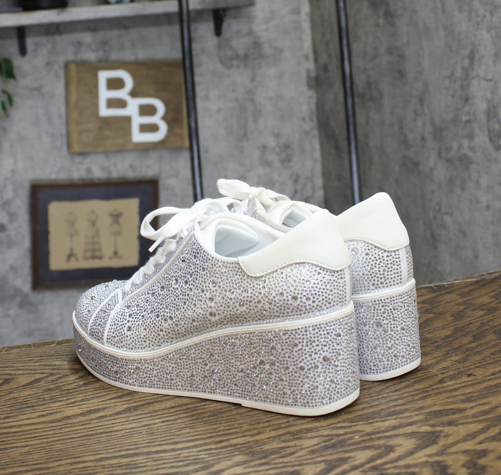 Sporty laced low tops get a glam-girl boost in sparkling rhinestones and platform wedges with the Aideen sneakers from I.N.C. International Concepts. Features 2-1/2" wedge heel; 1-1/4" platform Round toe Lace up Allover rhinestone detailing Exclusive Fabric upper; fabric lining; manmade sole Spot clean Imported