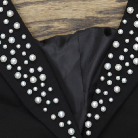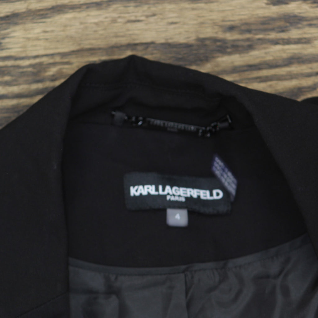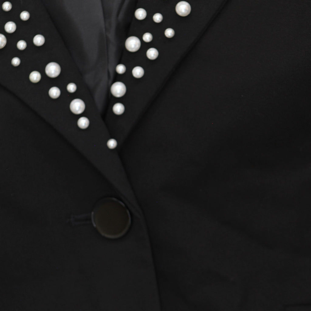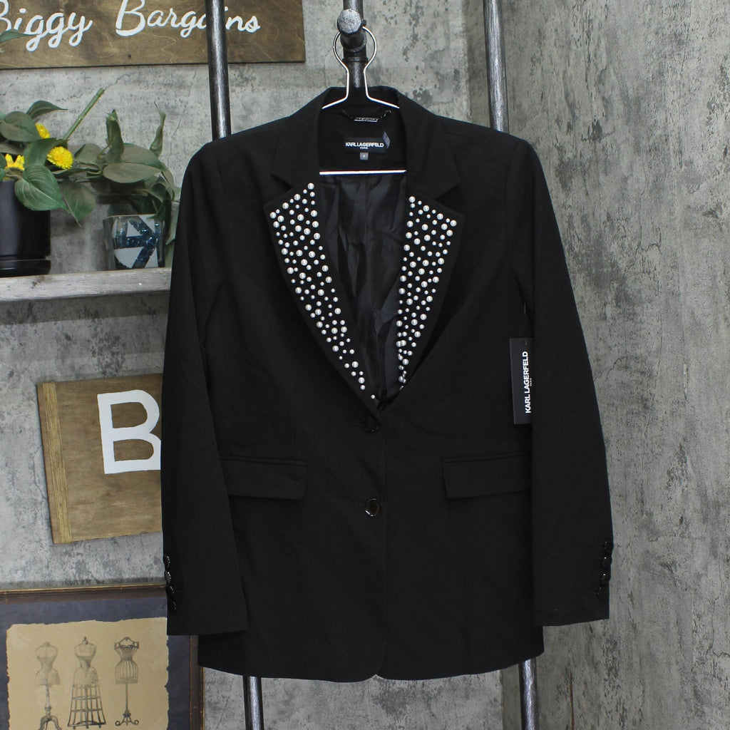 Karl Lagerfeld Paris Imitation Pearl Collar 2-Button Blazer Jacket Black 4