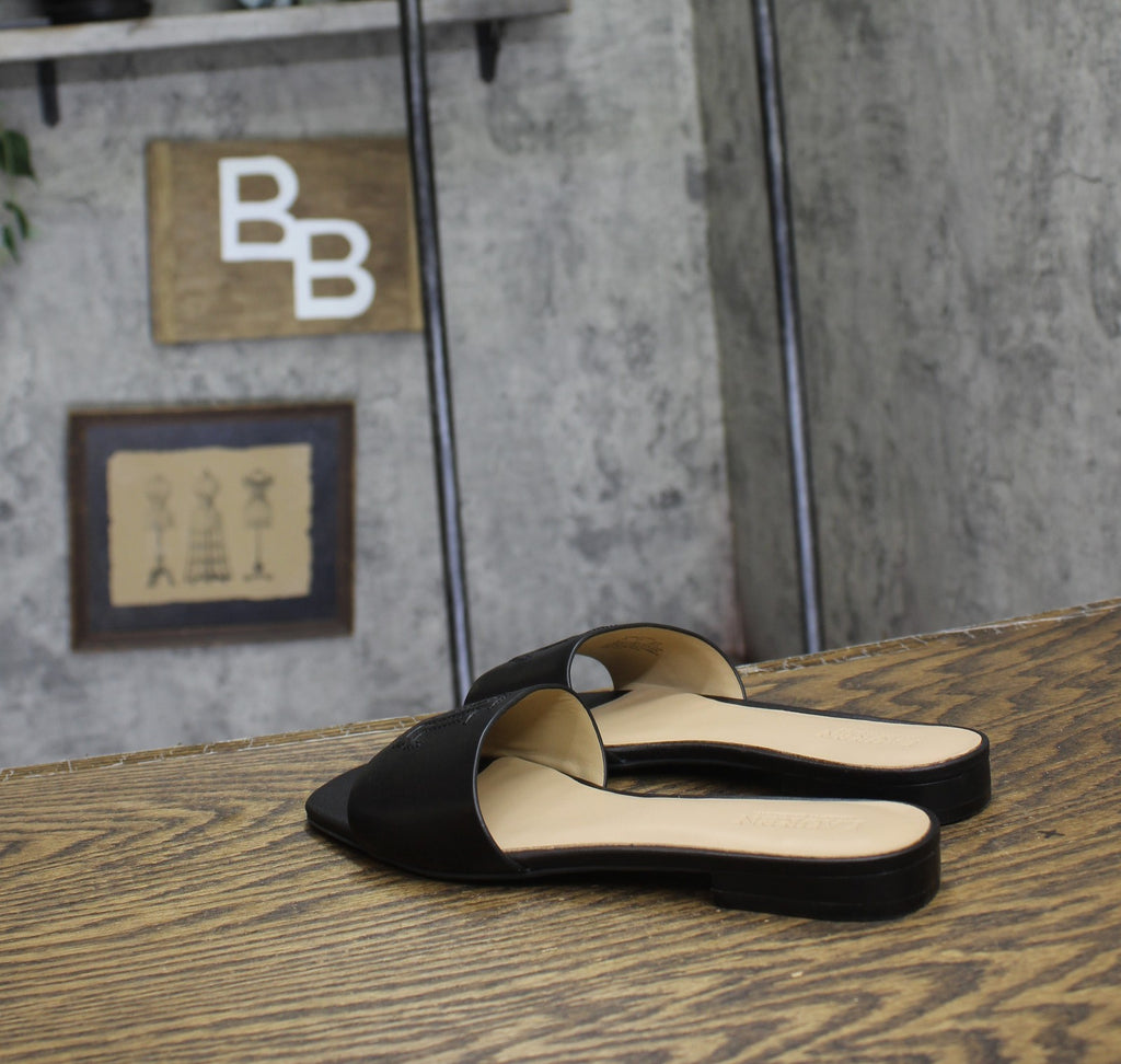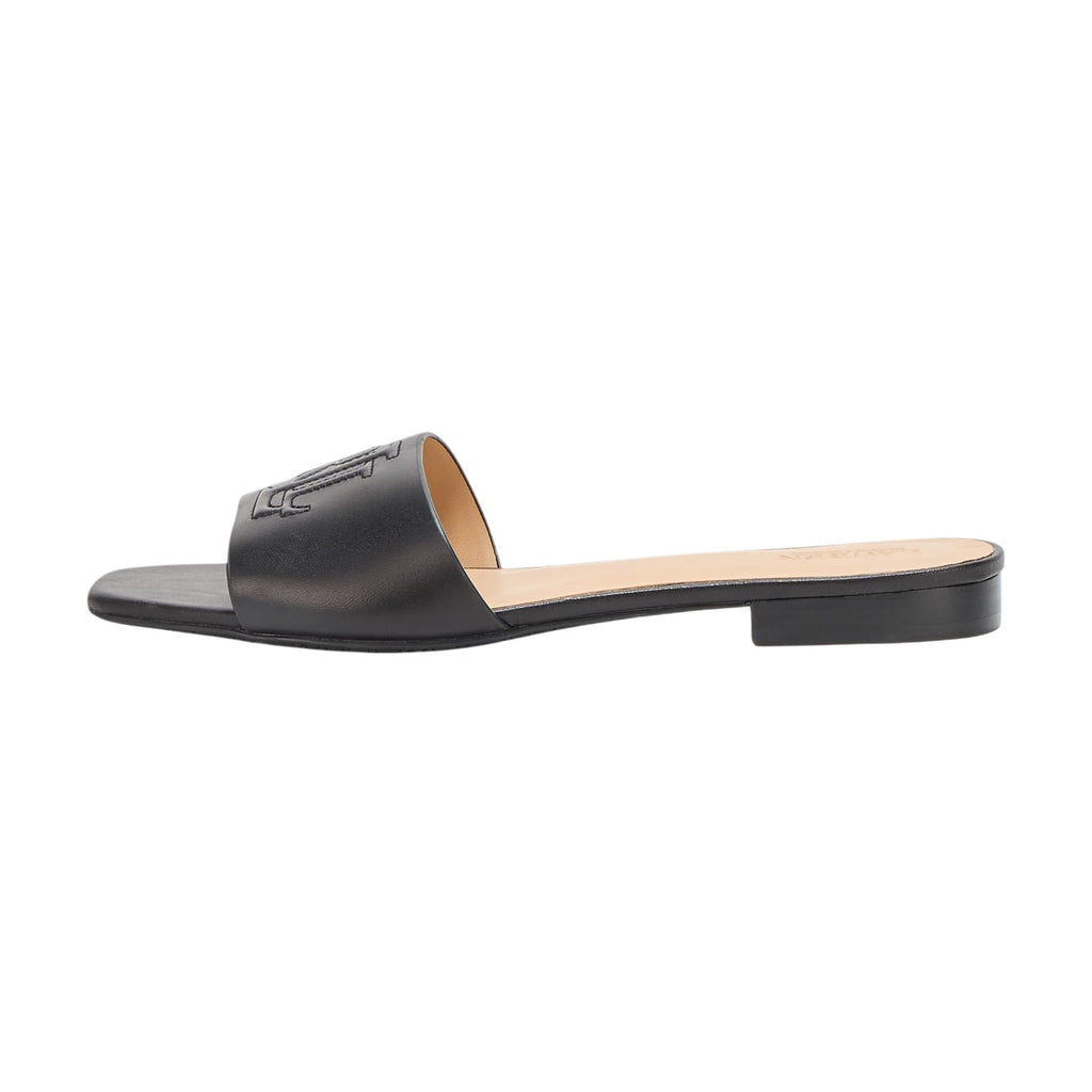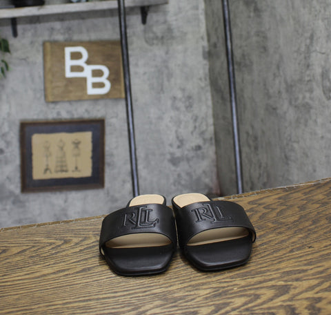 Featuring a smooth calfskin upper and open-toe design, each step showcases timeless elegance. The oversized "LRL" bombe logo on the vamp makes a bold statement