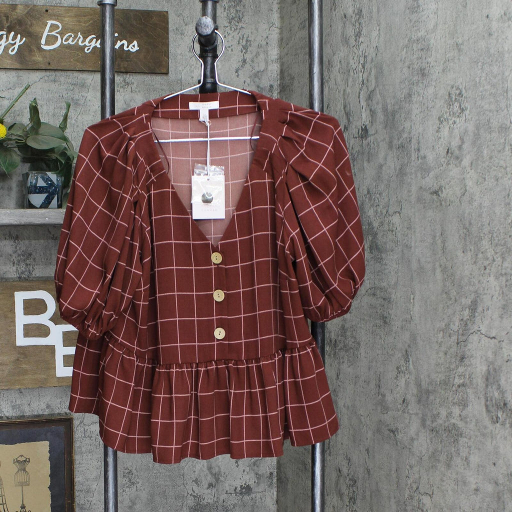 Kick your wardrobe up a notch with this cute women's ruffled button top from LC Lauren Conrad. Kick your wardrobe up a notch with this cute women's ruffled button top from LC Lauren Conrad. V-neck Puff sleeves Cropped, ruffled hem Front button closure Chiffon constructionFABRIC & CARE Polyester Imported Machine wash