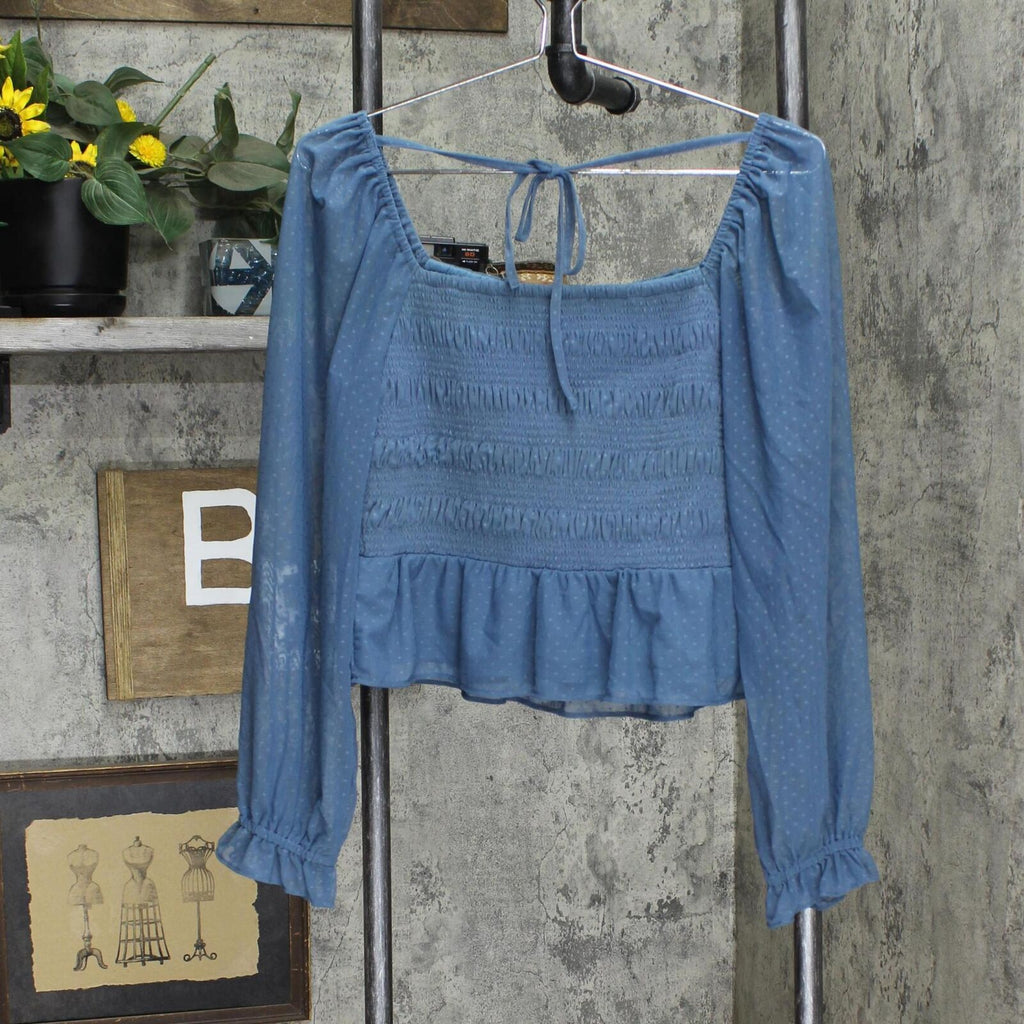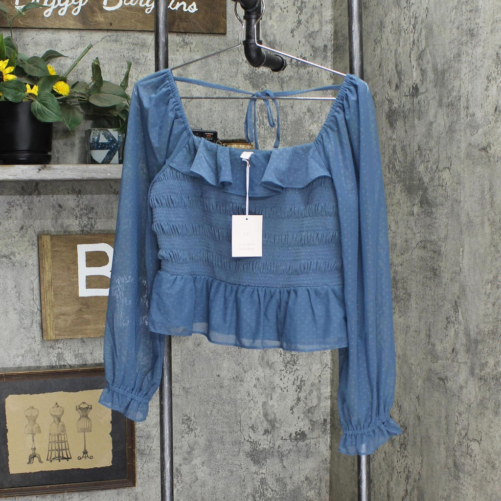 Cute and casual style is effortless with this women's LC Lauren Conrad smocked top. Cute and casual style is effortless with this women's LC Lauren Conrad smocked top. Smocked bodice Ruffled details Squareneck Sheer 3/4-length sleeves with elastic cuffsFIT & SIZING Peplum hemFABRIC & CARE Polyester, spandex; Nylon, spandex Lining: polyester Machine wash Imported
