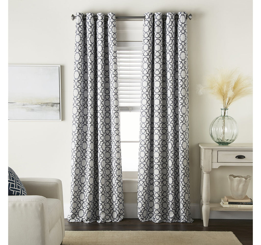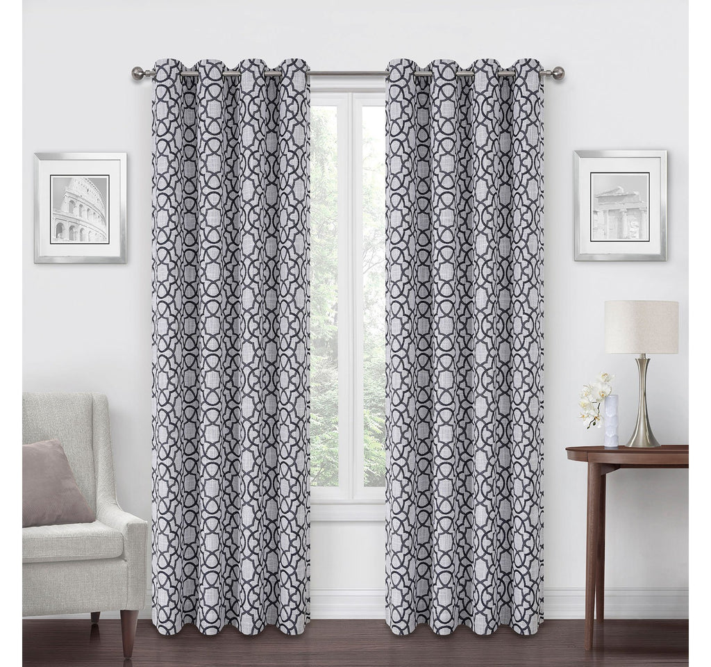 Immerse your room in modern elegance with the Campbell Geo Jacquard pattern. The geometric design adds a subtle yet captivating texture, enhancing the visual appeal of your windows. Our advanced blackout technology ensures a complete light-blocking experience, providing privacy and creating an ideal environment for relaxation or restful sleep. Number of Panels: 1 Included: 1 Panel(s) Features: Room Darkening, Energy Saving Top Construction: Grommet Top Opening: 1 1/2 In Grommet Open Use: Indoor Fiber Content: 100% Polyester Fabric Description: Woven Lining: Lined Lining Material: Polyester Light Filtration: 100% Blackout Care: Machine Wash Curtain Length: 95 Inch Curtain Width: 50 Inch Grommet