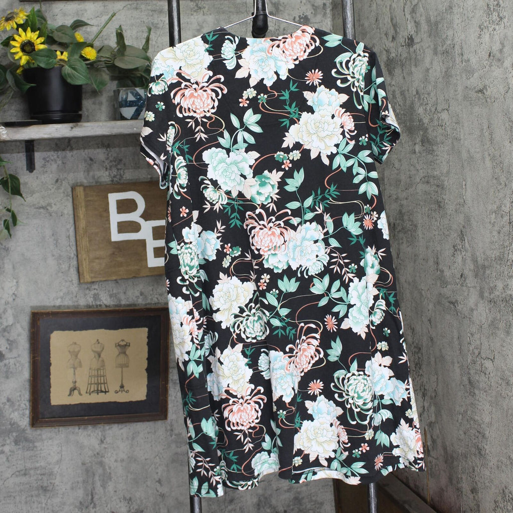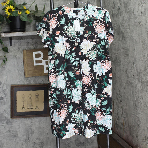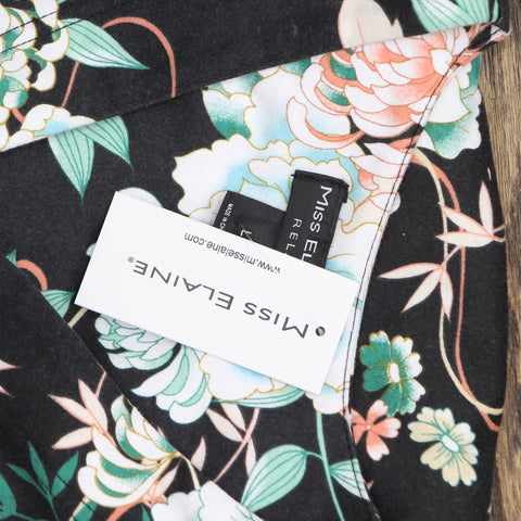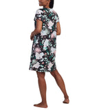 Miss Elaine Womens Snapfront Cotton Blend Nightgown Black Floral L