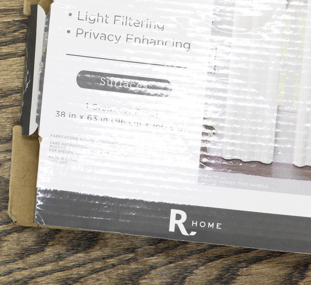 The Surfaces Solid is a textured woven fabric, which provides a cozy and lively mood. In addition, the fabric is soft and comfortable to the touch. Number of Panels: 1 Included: 1 Panel(s) Top Construction: Grommet Top Opening: 1 1/2 In Grommet Open Use: Indoor Fiber Content: 100% Polyester Fabric Description: Woven Lining: Unlined Light Filtration: Light-Filtering Care: Machine Wash Curtain Length: 63 Inch Curtain Width: 38 Inch Grommet
