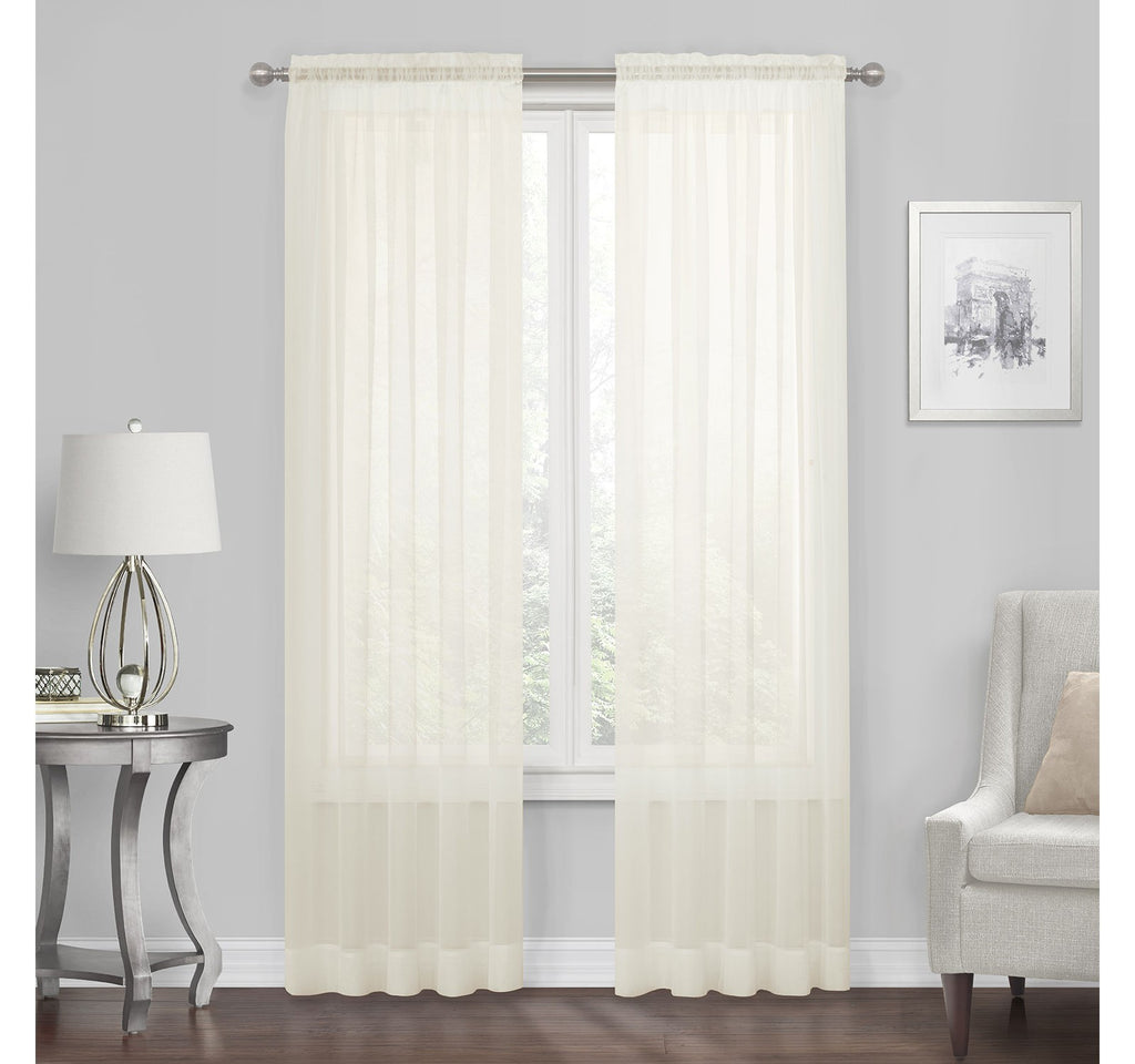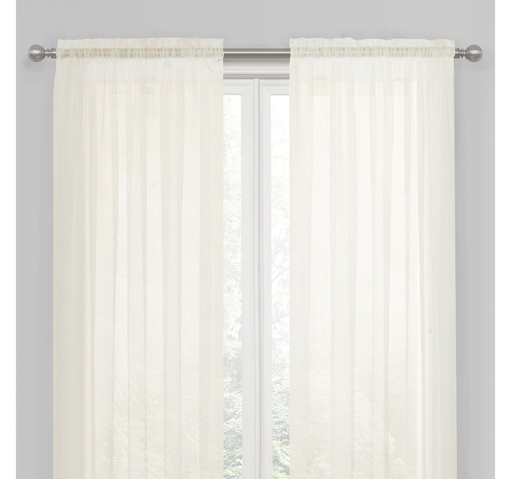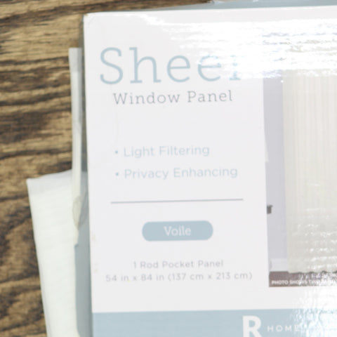 Solid Voile is a solid-colored sheer window curtain. This soft panel provides a simple and airy look to the room and easy draping. Number of Panels: 1 Included: 1 Panel(s) Top Construction: Rod Pocket Top Opening: 2 In Rod Pocket Use: Indoor Fiber Content: 100% Polyester Fabric Description: Voile Lining: Unlined Light Filtration: Sheer Care: Machine Wash Curtain Length: 84 Inch Curtain Width: 54 Inch Back of Curtain
