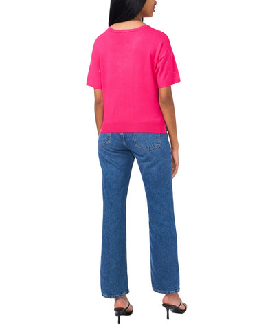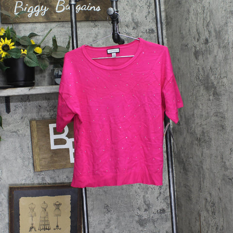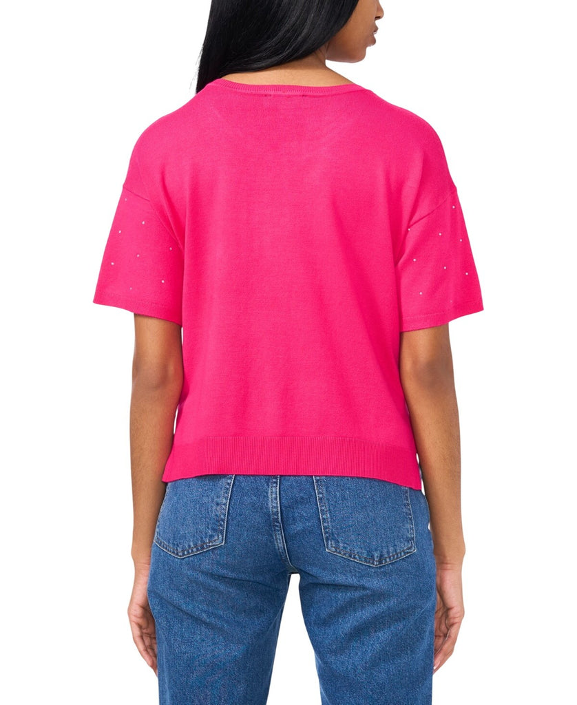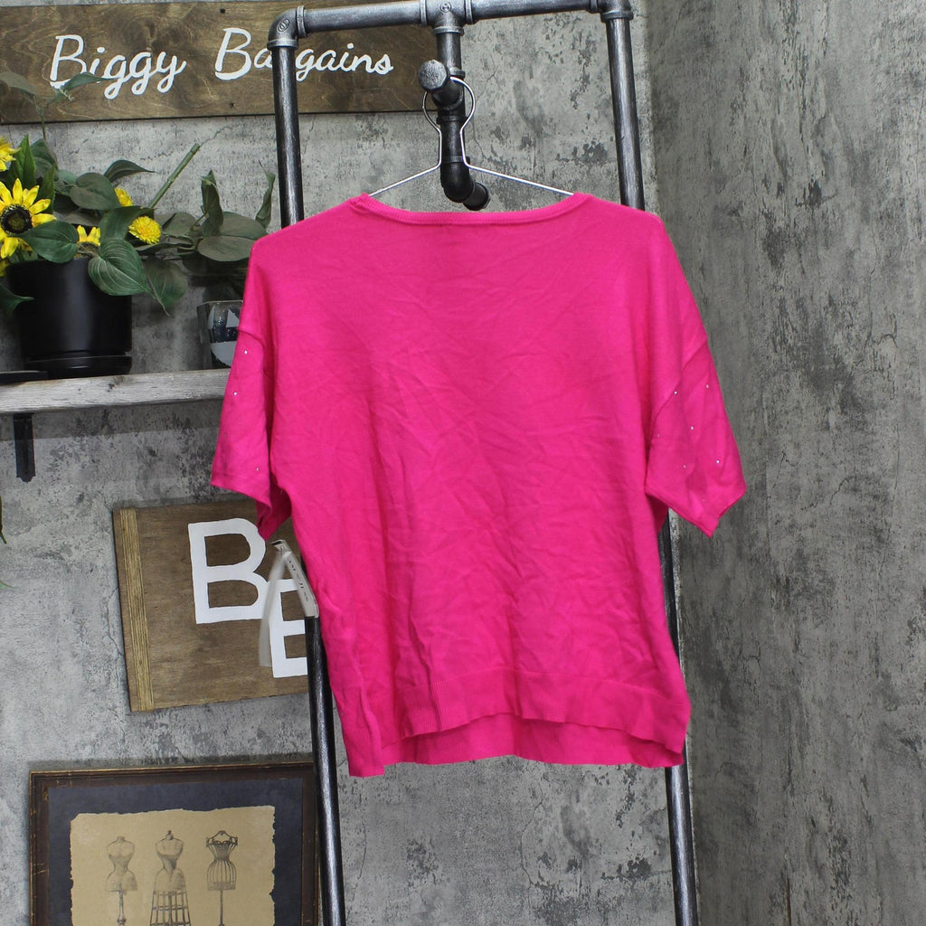 Sam & Jess Womens Short-Sleeve Embellished Sweater TA93148768AS Electric Pink M