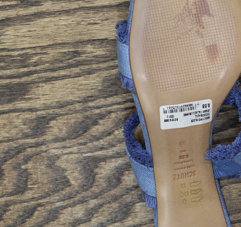 Fringed fabric straps and a chunk heel mule define the Amely Sandal, a slip-on style finished with a square-shaped toe. Features Open toe Slip on 2.5" Block Heel Man made upper; Leather lining; Leather sole Man made upper Wipe clean with a dry cloth Imported