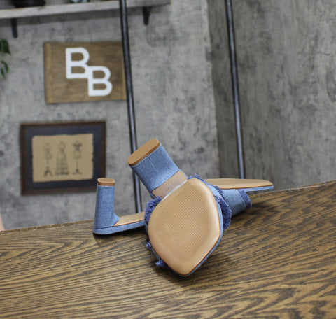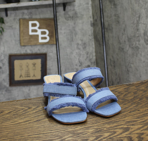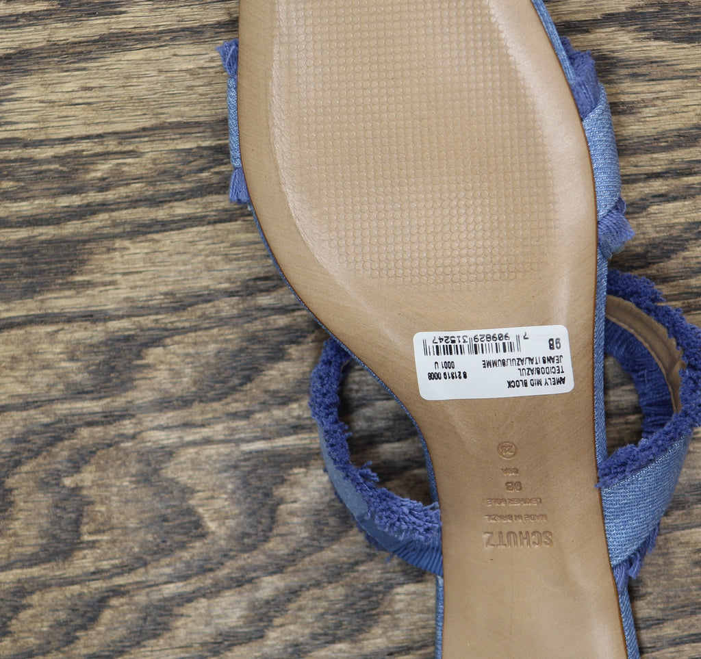Fringed fabric straps and a chunk heel mule define the Amely Sandal, a slip-on style finished with a square-shaped toe. Features Open toe Slip on 2.5" Block Heel Man made upper; Leather lining; Leather sole Man made upper Wipe clean with a dry cloth Imported