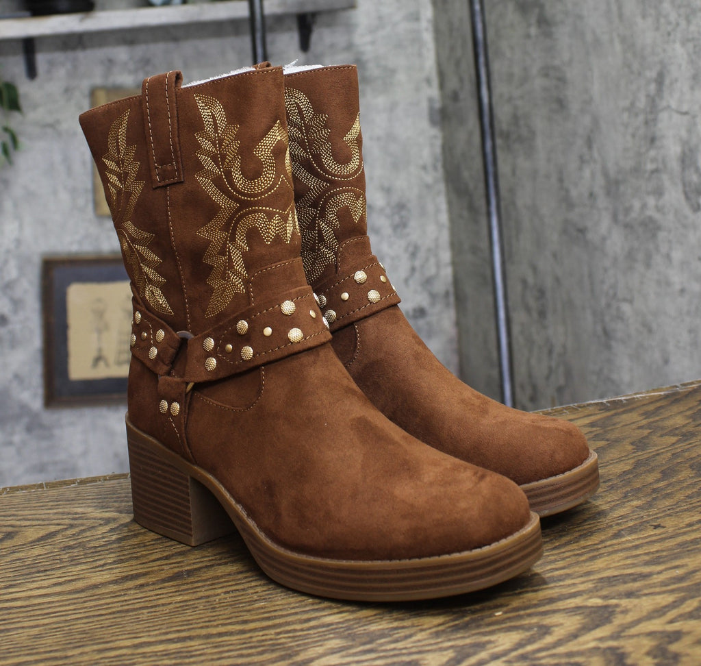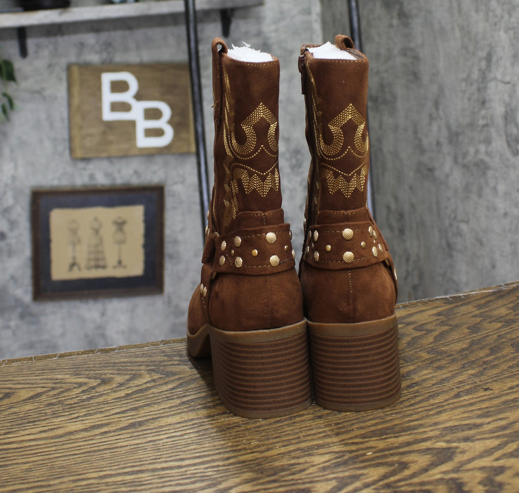 Sun + Stone Womens Norahh Moto Midshaft Bootie Russet Microsuede Brown 8.5M