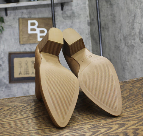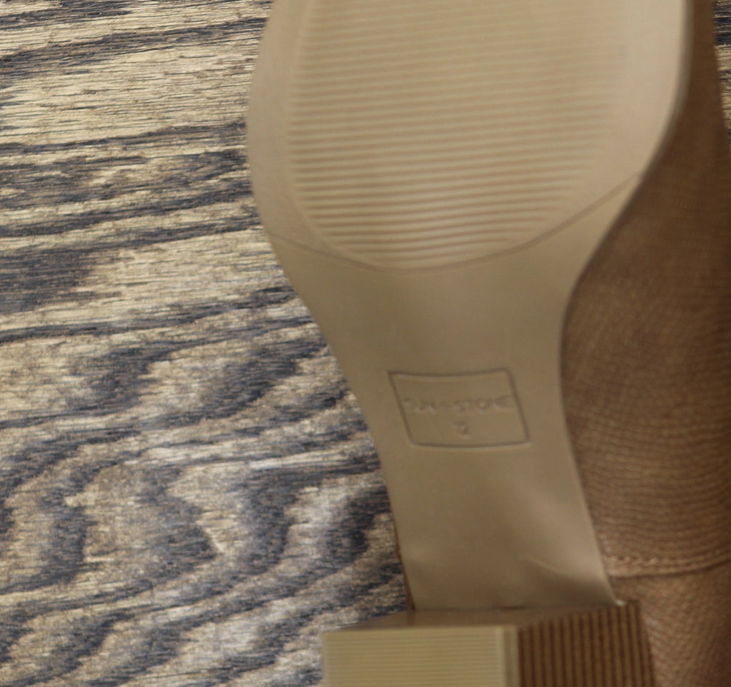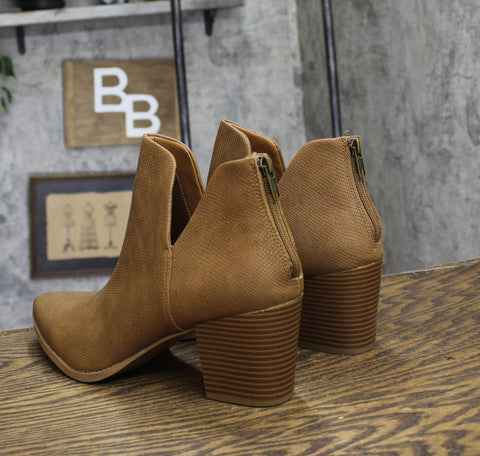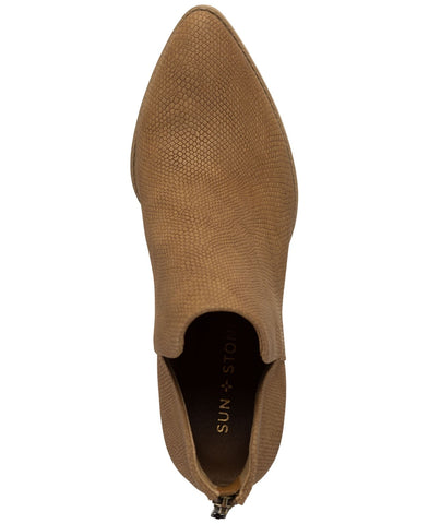 Heel height: 3 inches. Plunging V-notch cutouts complete the boho-chic look of Sun + Stone's Elizaa booties for a must-have addition to any wardrobe.