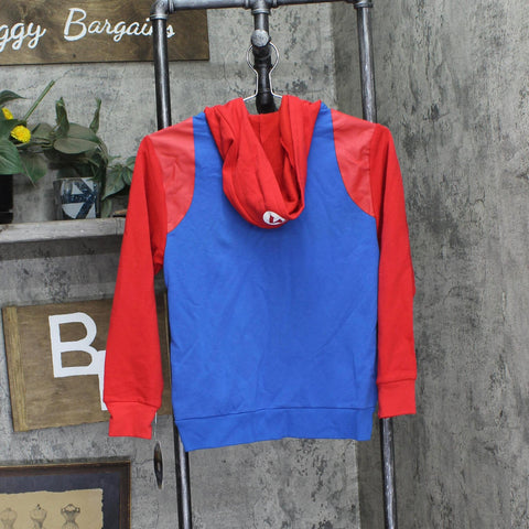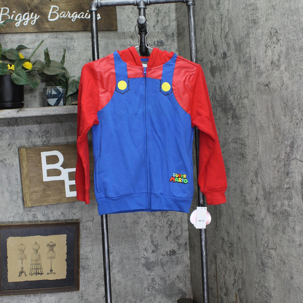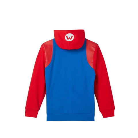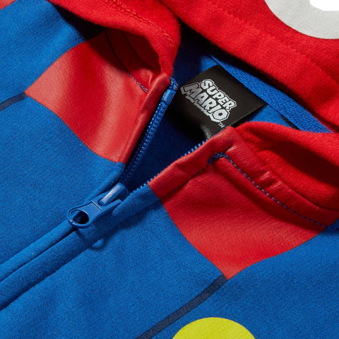 Your youngster will be ready to take their gaming fandom to the next level by dressing up in the Nintendo Super Mario Cosplay Sweatshirt. This hooded cosplay sweatshirt features a blue front with the name of the game "Super Mario" along with red sleeves and hood for fun Nintendo retro style. Made with soft fleece fabric for both comfort and coziness, this below-waist length sweatshirt allows for easy dressing with the front full-length zipper and helps provide a snug fit with the ribbed cuffs. Super Mario cosplay sweatshirt in blue and red Midweight, fleece fabric Long sleeve, below-waist length Ribbed cuffs Front full-length zipper Sizing: Boys Material: 60% Cotton, 40% Polyester Fit: Standard Fit Length: At Hip Item Style: Graphic Sweatshirts Garment Style: Long Sleeve, Front Full Length Zipper Fabric Name: Fleece Neckline: Hooded Garment Details: Front Pocket Fabric Weight Type: Midweight Fabric Garment sleeve style: Basic Sleeve Care and Cleaning: Machine Wash, Tumble Dry