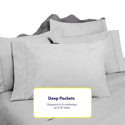 These elastic corners keep your fitted sheet secure to the bed and come on all of our sheets. SLEEP IN LUXURY – No more sleepless nights on uncomfortably itchy sheets! Sleep soundly on the softest 1500 Supreme Deluxe Collection sheets. Be warned, though: You may never be an early bird again! SUPERB SHEET SET – Each luxurious set has 1 fitted, 1 flat sheet, and 4 pillowcases (NOTE: Twin & Twin XL sizes include 2 pillowcases). Deep pockets, thick elastic, and BUILT IN SHEET STRAPS make your new soft sheets stay in place! STAY CLEANER, LONGER – Who has time to wash their sheets every few nights When it’s time for a wash, machine wash cold, and tumble dry low. PERFECT FIT FOR ANY BED – Sleep soundly for years to come! Your deep pocket sheets are fade, shrink, and wrinkle resistant. We’ve got you (and your bed) covered.