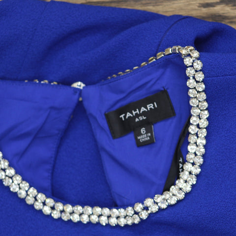 Tahari ASL Womens Rhinestone Trim Shift Dress DAM625-T4 Cobalt Blue 6