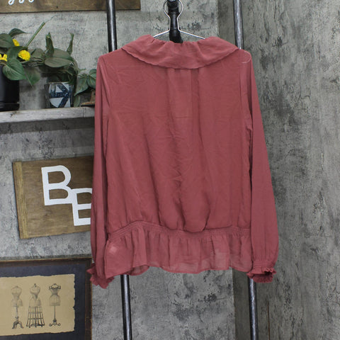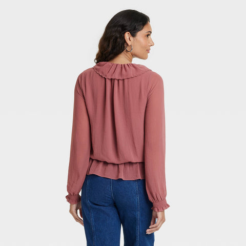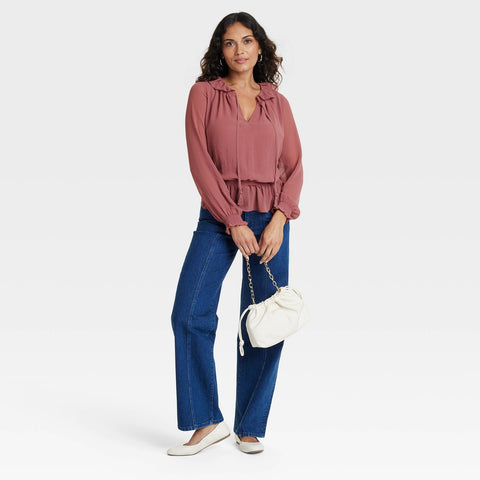 This Long-Sleeve Blouse from Universal Thread makes a great pick for everyday wear. This chiffon blouse features a V-neckline with a tie closure and cuffed long sleeves for a lovely aesthetic. Universal Thread long-sleeve blouse Lightweight chiffon fabric V-neckline with tie closure Pullover Casual fit Sizing: Womens Material: 100% Recycled Polyester Fit: Casual Fit Length: At Hip Item Style: Fashion Tees Garment Style: Long Sleeve, Pullover, Front Tie Fabric Name: Chiffon Neckline: V Neck Garment Details: No Pocket Fabric Weight Type: Lightweight Fabric Garment sleeve style: Basic Sleeve Care and Cleaning: Machine Wash, Tumble Dry