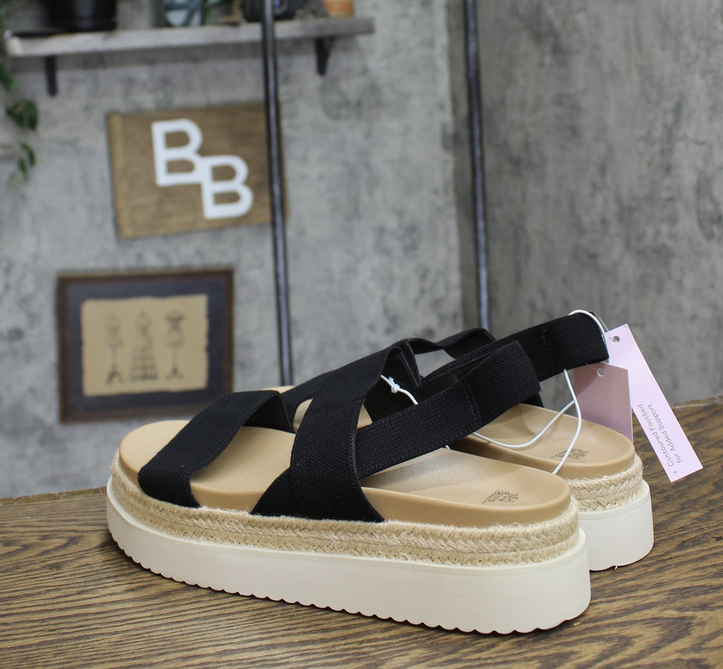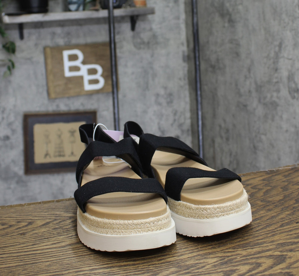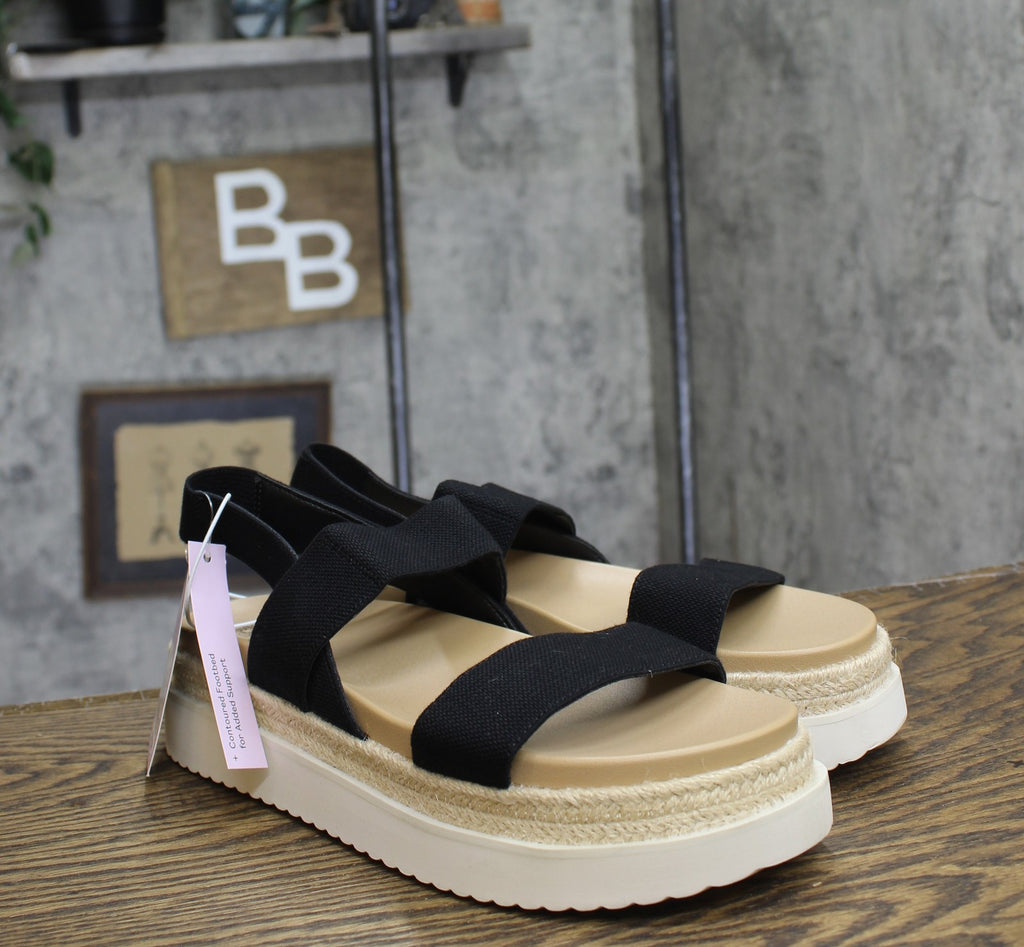 Elliot stretch strappy platform sandals from Wild Fable with a 1.5-inch heel. Feature a round open-toe silhouette with a double-band upper. Elastic ankle strap and an open-back design complete the look with an airy fit. Wild Fable: A look for every story.