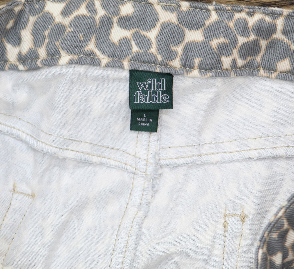 Twill pants from Wild Fable with a brown leopard print. Tailored in a high-rise silhouette with a regular fit and straight legs. Made of lightweight cotton for breathable all-day comfort. Designed with a belt loop waistband and zip fly with button fastening. Twill pants with brown leopard print Lightweight cotton fabric Straight leg with a regular fit High-rise silhouette Zip fly and button fastening Side and back pockets Sizing: Womens Material: 70% Cotton, 30% Recycled Cotton Fit: Straight Leg with a Relaxed Fit Closure Style: Fly Button and Zipper Rise: Mid Rise Inseam Length: 31 Inches Fabric Name: Twill Garment Length: Full Garment Details: Back Pocket, Side Pocket Fabric Weight Type: Lightweight Fabric Stretch: No Stretch Care and Cleaning: Machine Wash, Tumble Dry
