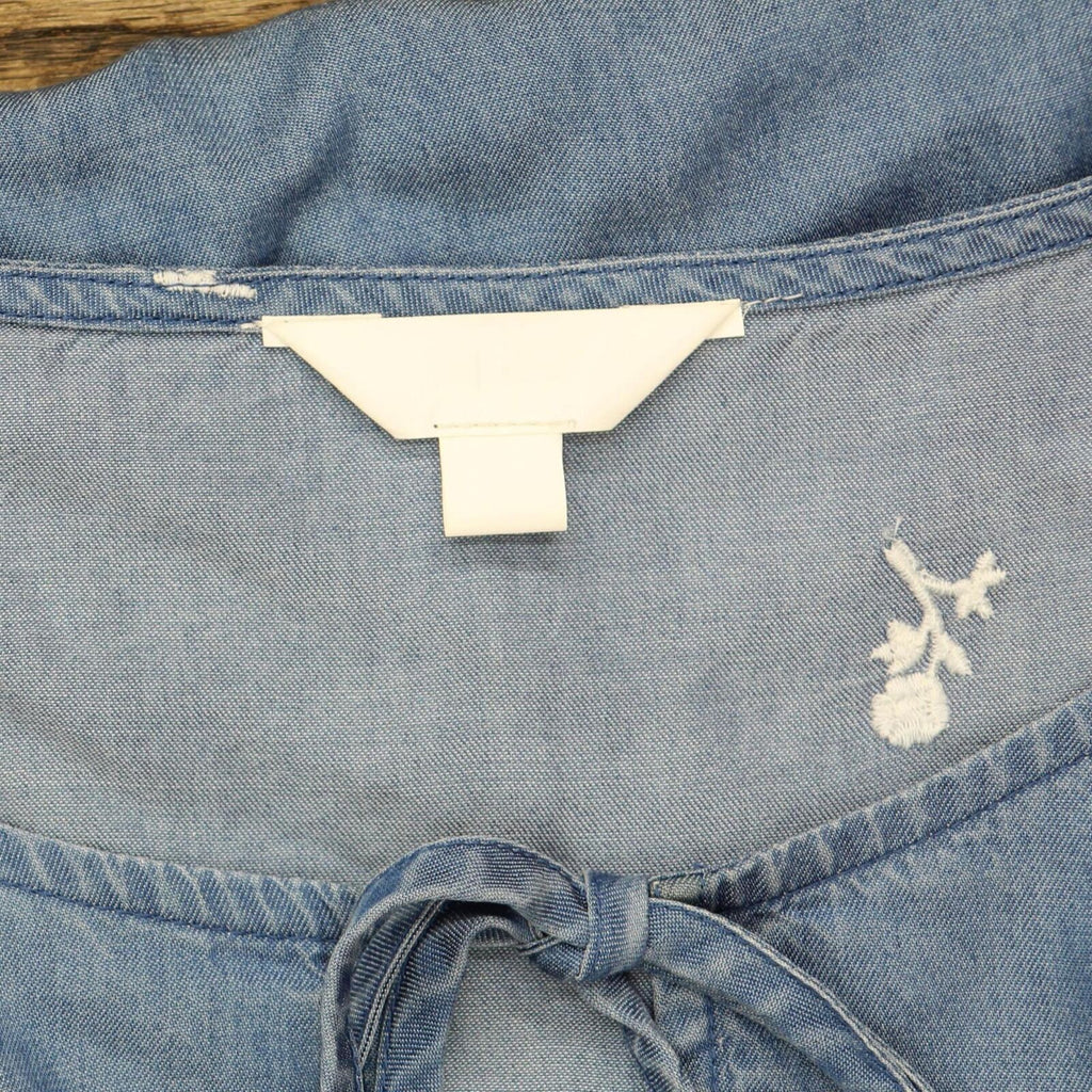 Womens Bell Sleeve Lightweight Denim Shirt Top Blue / White See Measurements