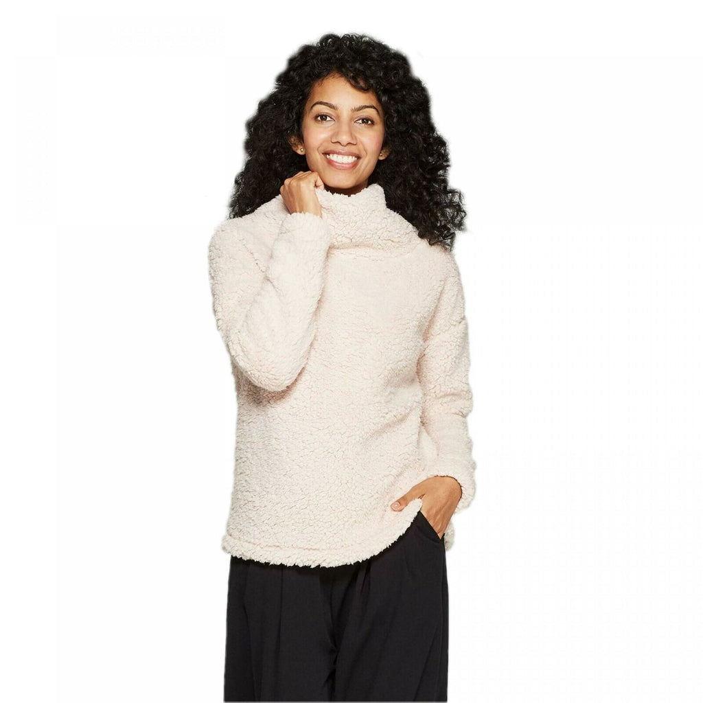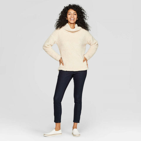 Cozy up for the cold-weather days in chic style with the Any Day Long-Sleeve Turtleneck Sherpa Pullover from A New Day. This long-sleeve pullover keeps you nice and snug with a turtle neckline, while an allover sherpa construction adds to the overall warm and comfy fit. Cut in a relaxed silhouette to fall at the hip, you can wear this sherpa sweater with a range of bottoms to suit your personal style. Keep things casually cute with a pair of moto leggings and sneakers for a day of relaxing at home or running errands, and then switch to distressed skinny jeans and knee-high boots for a day out enjoying the brisk fall season.