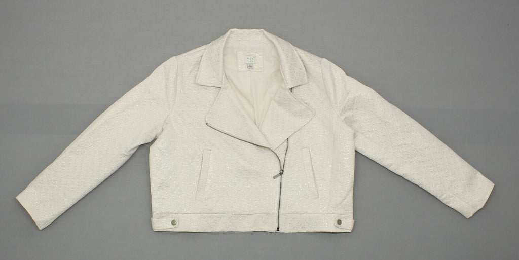 A structured jacket is a great solution for slightly chilly days where you want to maintain a tailored and stylish look. The Jacquard Moto Jacket from A New Day is a long-sleeve jacket featuring a textured woven fabric. The inside is fully lined.