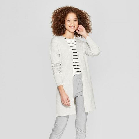 A New Day Women's Long Sleeve Open Cardigan Sweater Gray XS