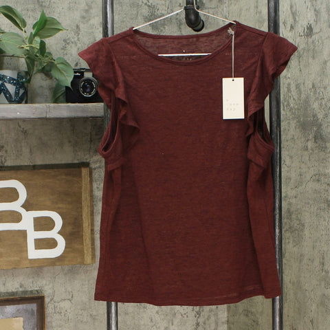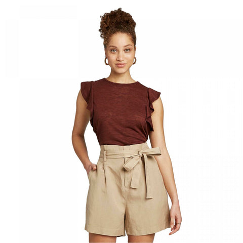 Keep it easy-breezy on those hot day with the Ruffle Short-Sleeve Linen Look Top from A New Day. This women's top is made from a soft and lightweight fabric with a flowy drape and below-waist silhouette, which looks just as good with smart trousers as it does with ripped jeans or denim shorts. The short-sleeve top is tailored in a classic crewneck style and ruffles on the sleeves add a fun, frilly finish. Throw it on with jeans or jogger pants and sneakers for casual hangouts, or tuck into cropped trousers with sandals for a smart-casual look.