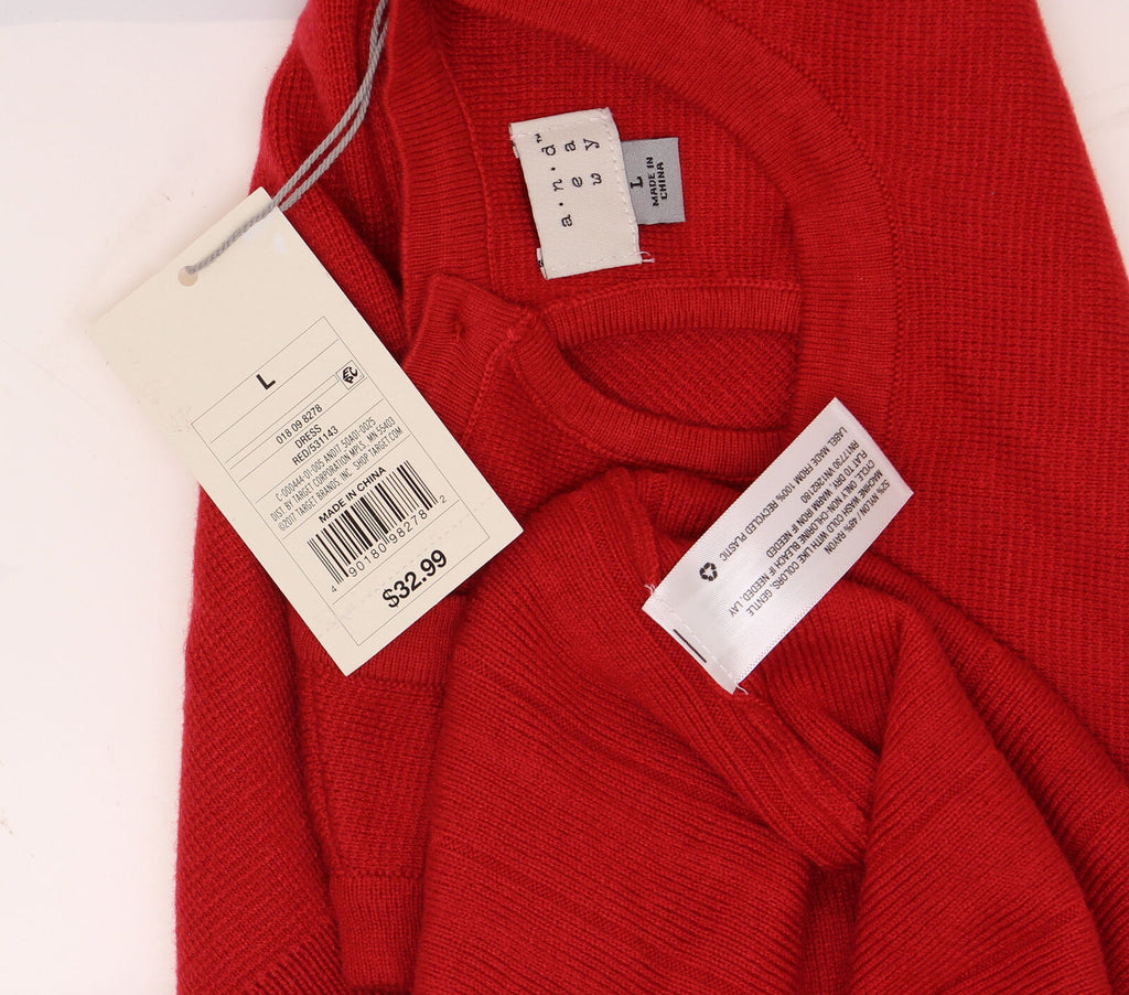 A New Day Women's Textured Sweater Dress Red Large