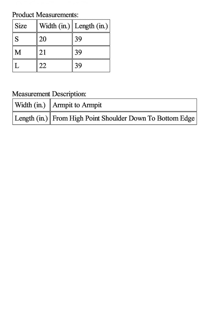 | Width (in.) | Armpit to Armpit |