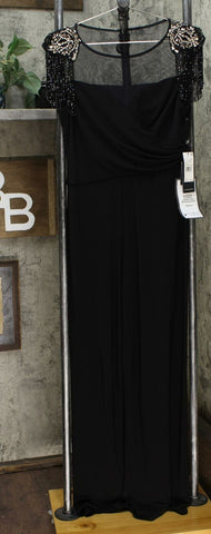 One fabulous look. Adrianna Papell's stunning one-piece goes in a glam new direction with sheer details and a shoulder-dusting of sparkle.
