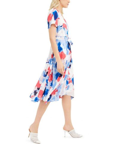 A gorgeous fit-and-flare wrap silhouette drapes around your frame in this petite dress from Alfani. A belted waist enhances the effect.