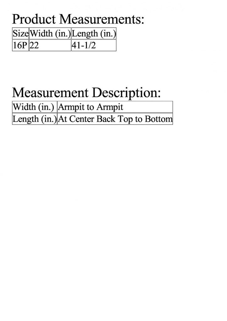 | Length (in.) | At Center Back Top to Bottom |