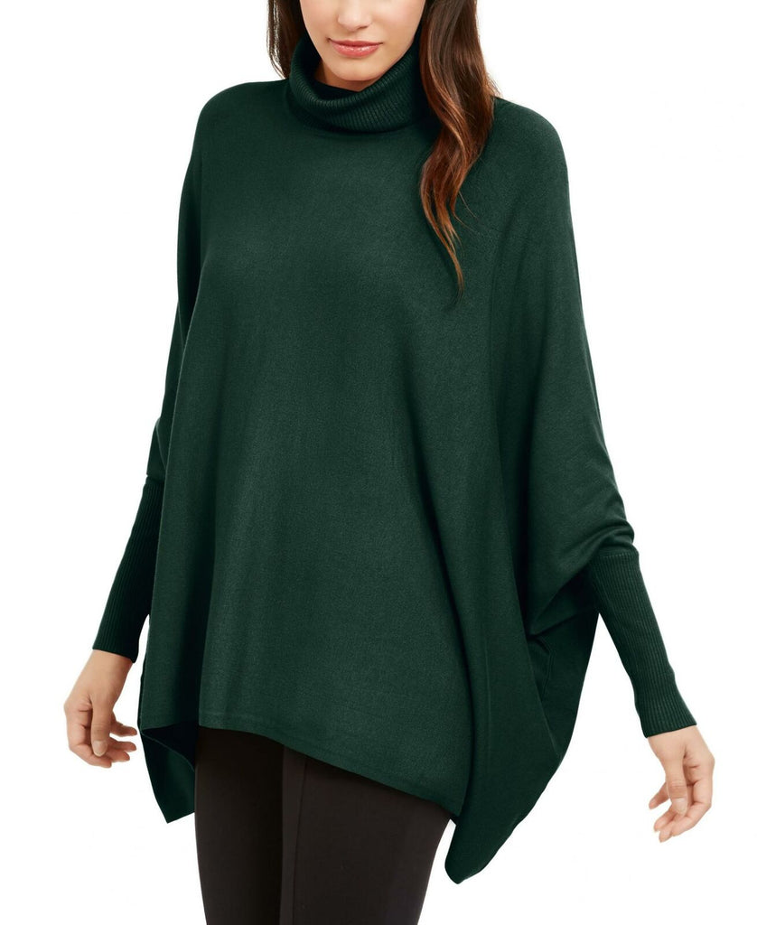 Embrace dramatic elegance and sophistication with Alfani's cozy petite turtleneck sweater. The voluminous poncho silhouette is beautifully balanced with slim ribbed cuffs for a chic look.