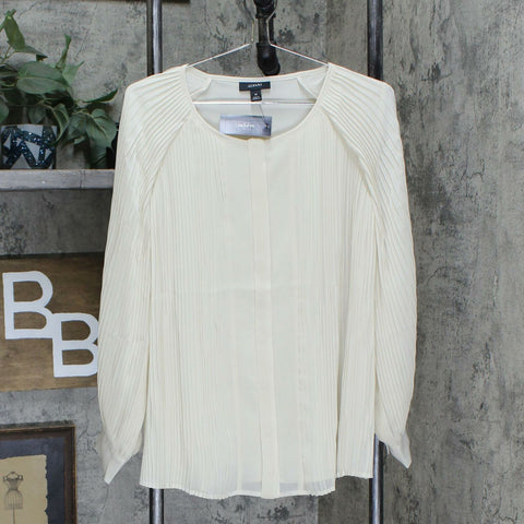 Chic pleats turn up the sophisticated texture on this plus size woven blouse from Alfani.